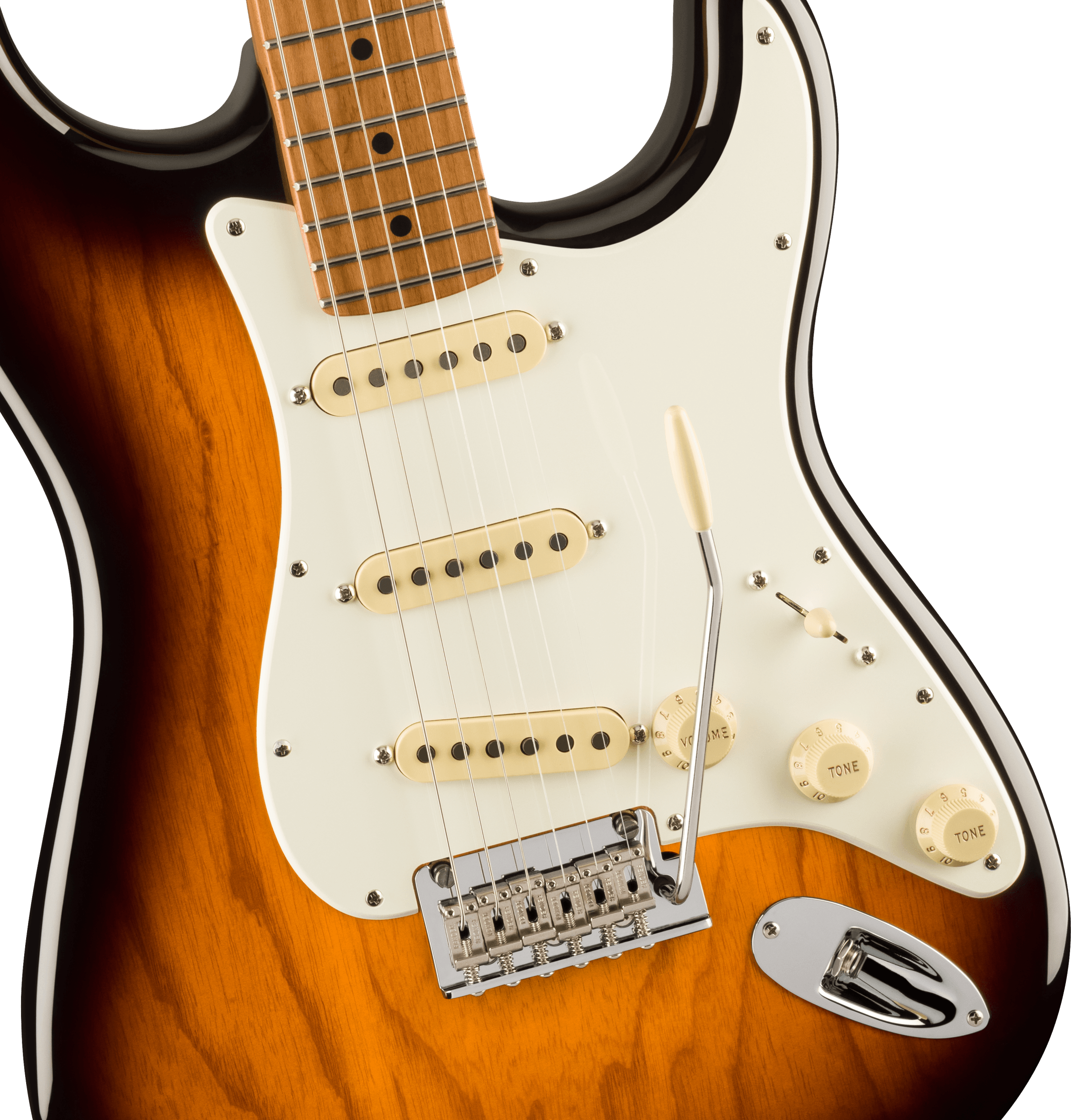 Info sui prodotti "Fender® American Professional II Stratocaster, Roasted Maple Fingerboard, Anniversary 2-Color Sunburst"